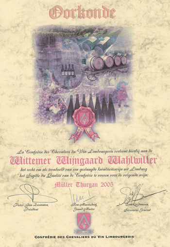 prijs in de vorm van een sigille voor de Müller Thurgau 2005.